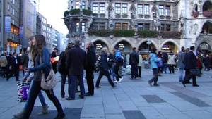 Fußgängerzonen-Atmosphäre; hier München, Marienplatz
